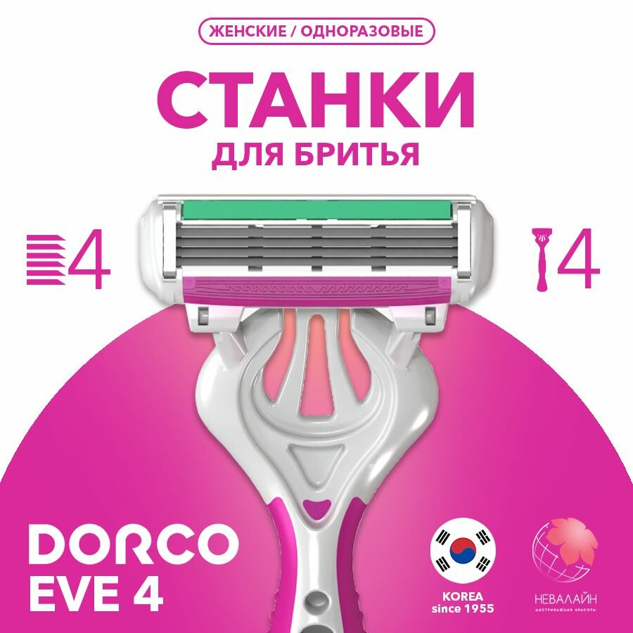 DORCO Женский станок для бритья одноразовый Еve 4, плавающая головка, увлажняющая полоса, 3+1 шт., 4 лезвия