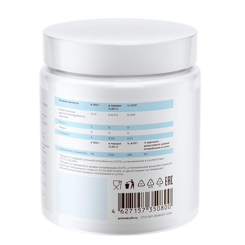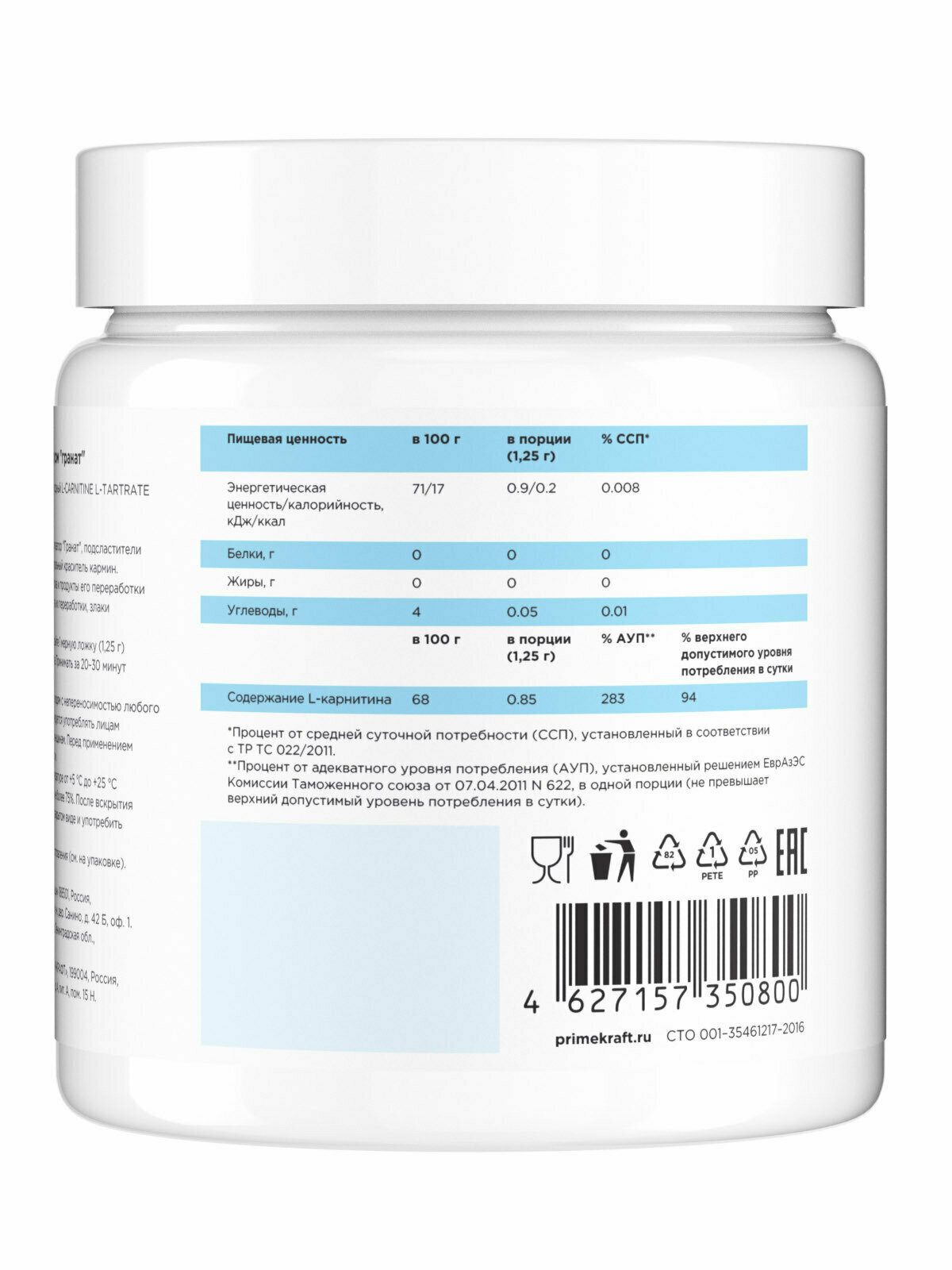 L-карнитин PRIME KRAFT L-Carnitine L-Tartrate, порошок , 200гр, нейтральный [яб027787]