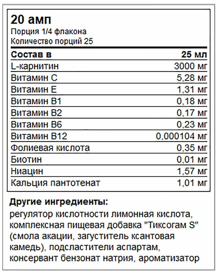 | Количество ампул | 20 |