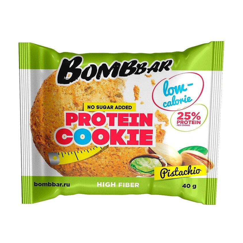 Низкокалорийное протеиновое печенье Bombbar Protein Cookie без сахара "Фисташка", 12шт х 40г