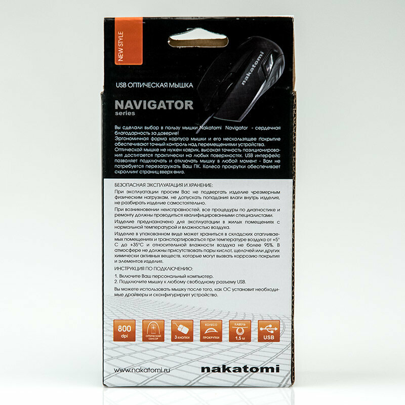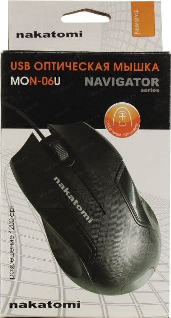 Мышь Nakatomi Navigator MON-06U, черная, USB, проводная, 3 кнопки + ролик прокрутки