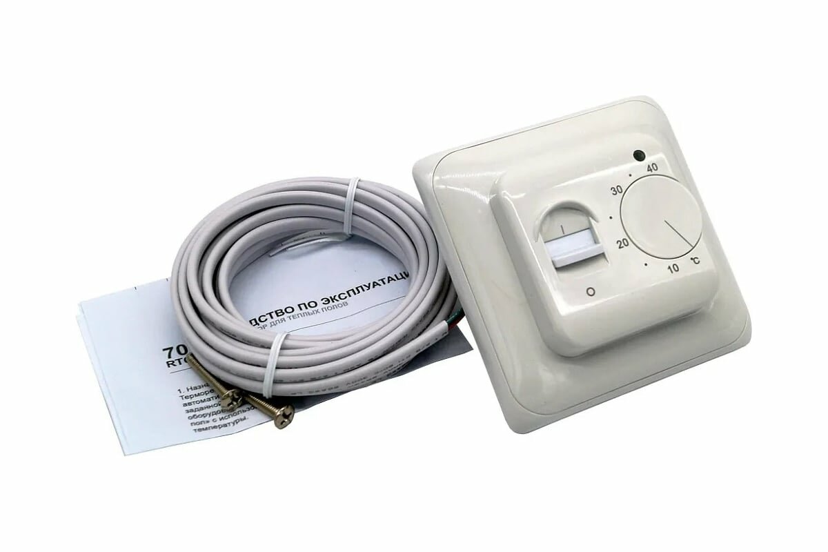 Белый терморегулятор для теплого RTC 70.26 MENRED / Терморегулятор с датчиком температуры / Механический термостат комнатный / Термостат до 3600Вт