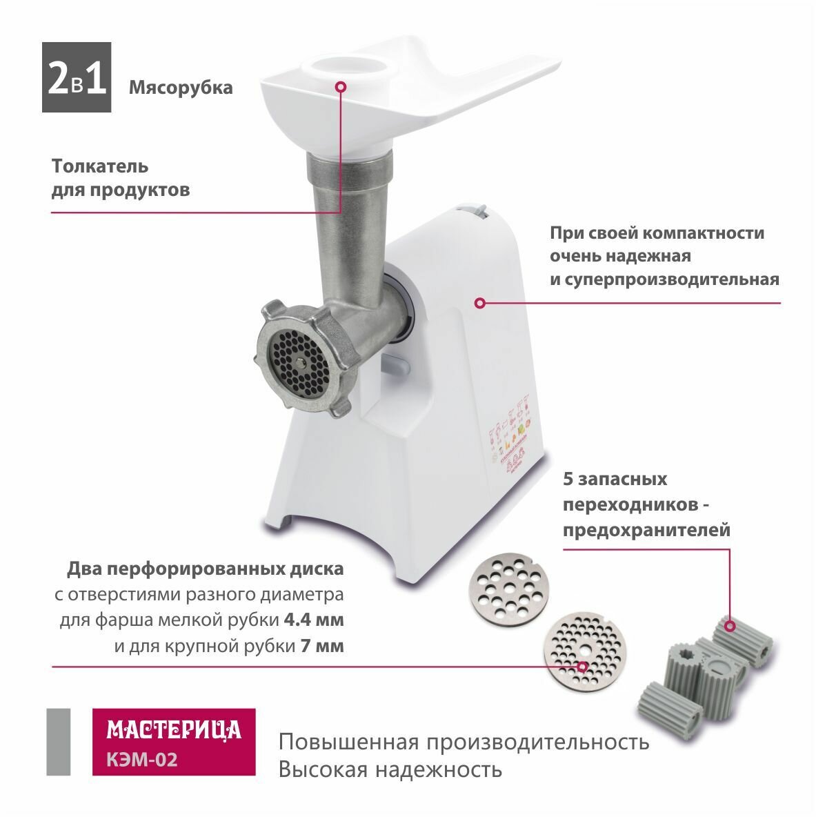 Мясорубка мастерица КЭМ-02, белый