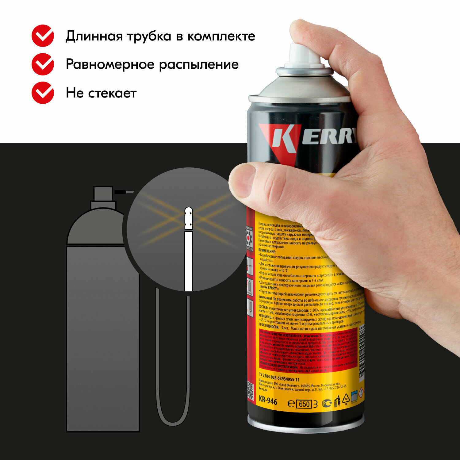 KERRY KR-946 Мовиль (консервирующий состав) (аэрозоль) (650 мл.) kerry kr-946