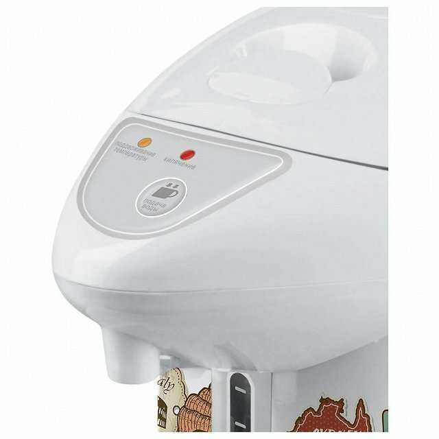 | Отзыв: | Удобная штука, теперь постоянно с горячей водой, нажмешь на кнопочку, и вот пей горячий чаек. Корпус снаружи не нагревается, выглядит термопот симпатично, с рисуночком.