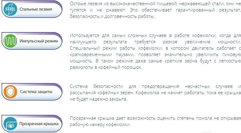 | Плюсы: | Маленький объем на одну столовую ложку кофе, быстро измельчает. |