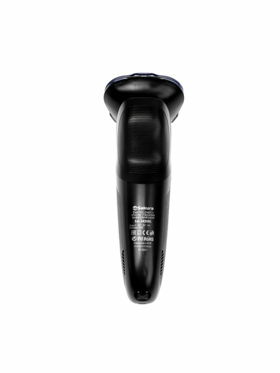 SAKURA Электробритва Sakura SA-5420BL,3 Вт, роторная, 3 головки, сухое/влажное бритьё, триммер, АКБ