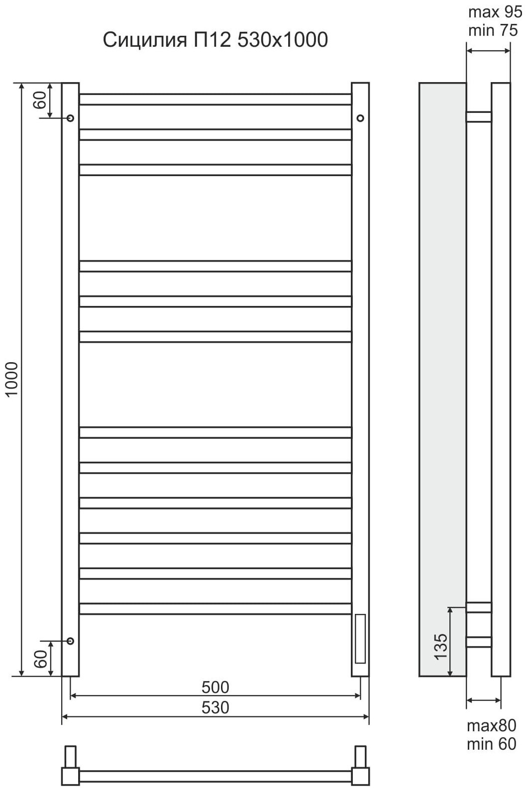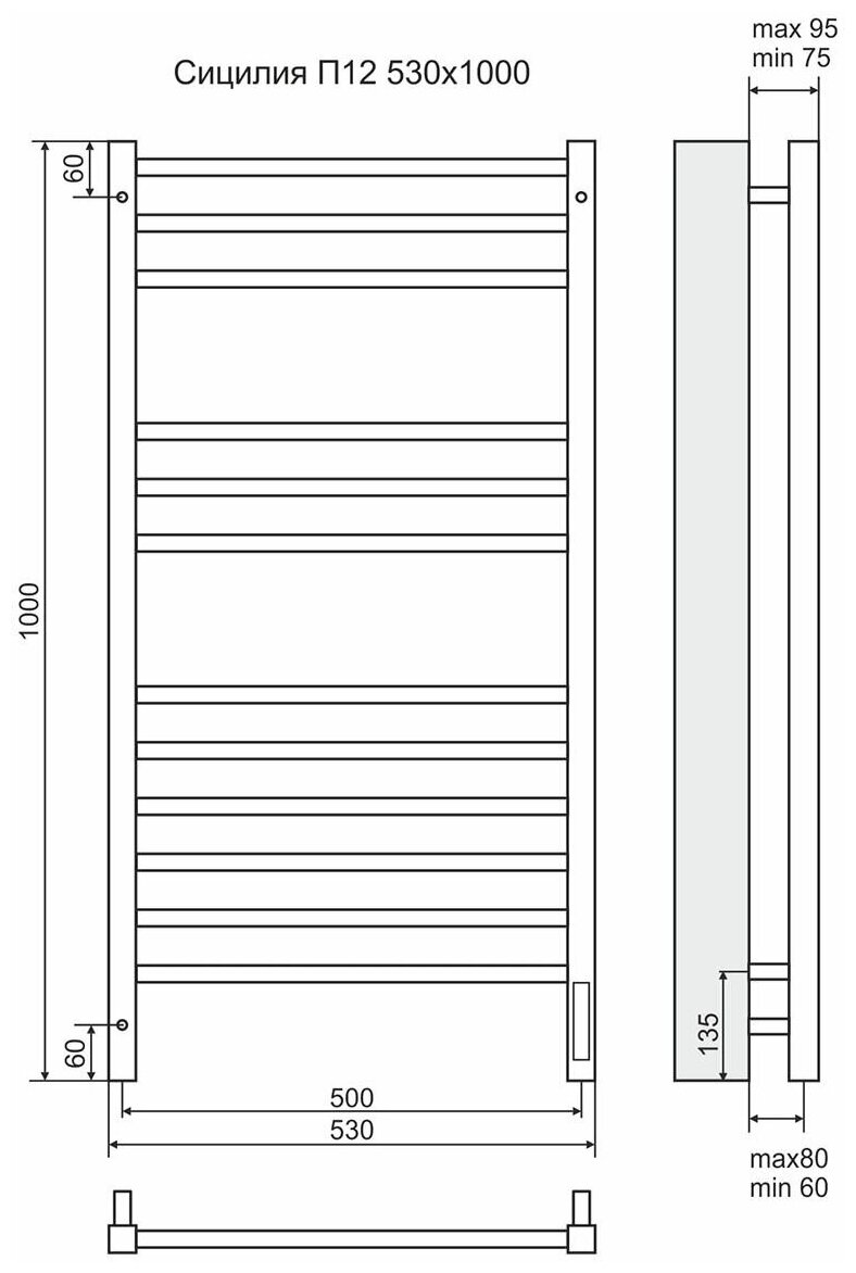 Купить З Полотенцесуш Сицилия элек 30х30/18 П12 6-3-3, 500мм*1000мм, Terminus, арт СицилияЭП12-5001000