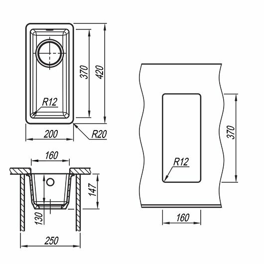 СохранитьЧаша для мойки прямоугольная Флорентина Вега 160 Чёрная (22.300.00160.102) интересное:
