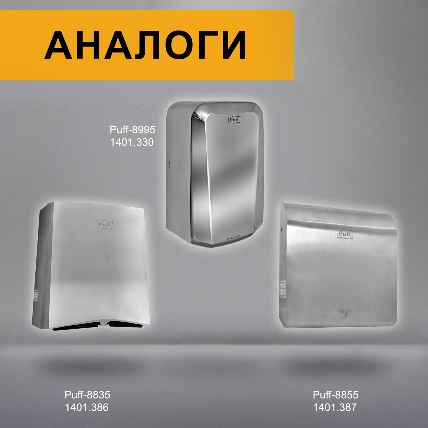 Сушилка для рук PUFF 8887, 1200 Вт, нержавеющая сталь, серебристая, 1401.343
