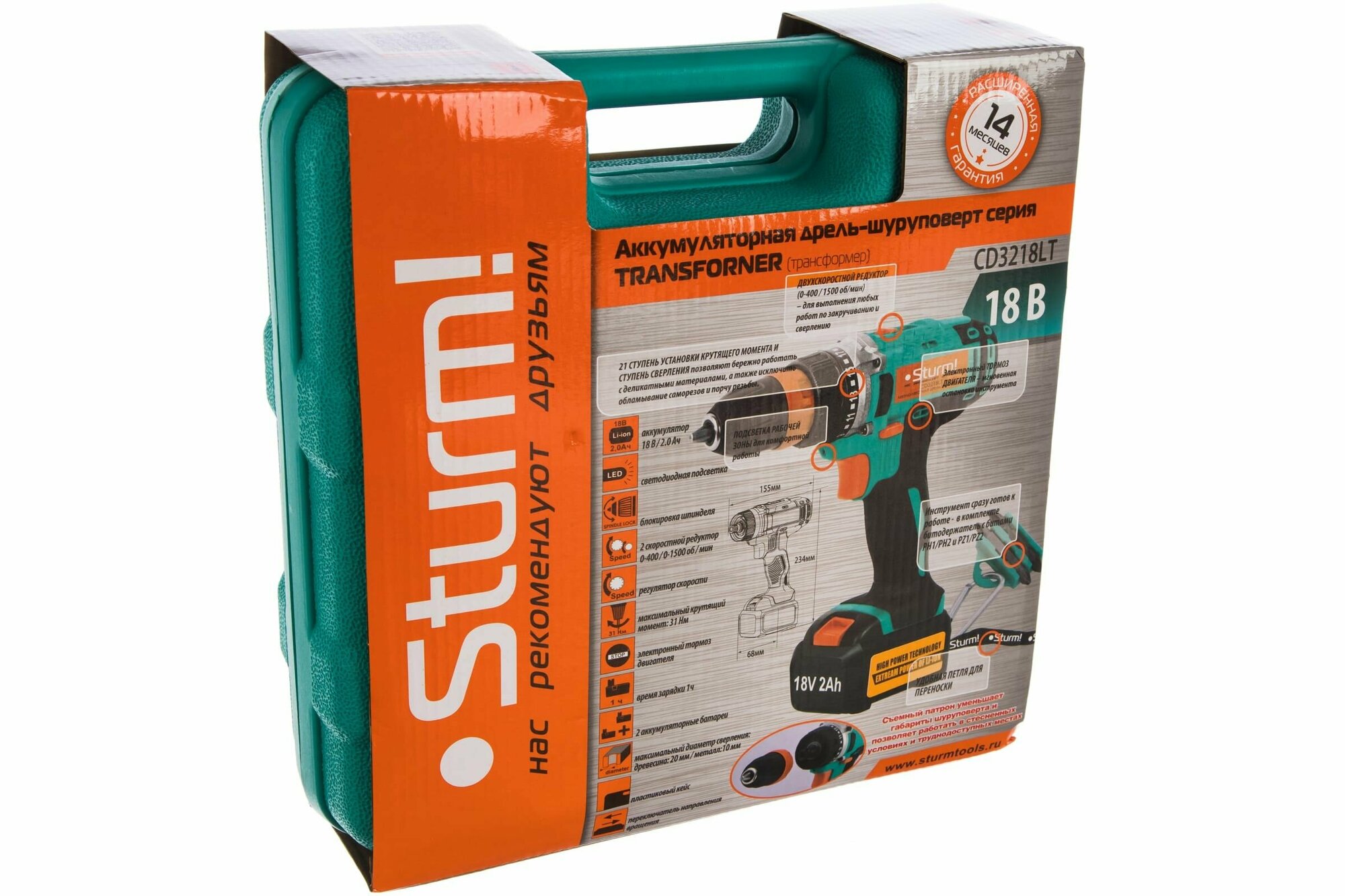 Дрель-шуруповёрт аккумуляторная Sturm! CD3218LT (быстросъёмный патрон) интересное: