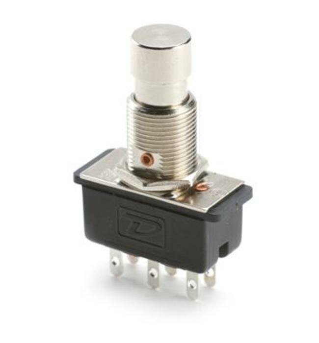 Переключатель (кнопка) для педалей эффектов Dunlop ECB035, True Bypass, Latching, ON-ON, хром/чёрная
