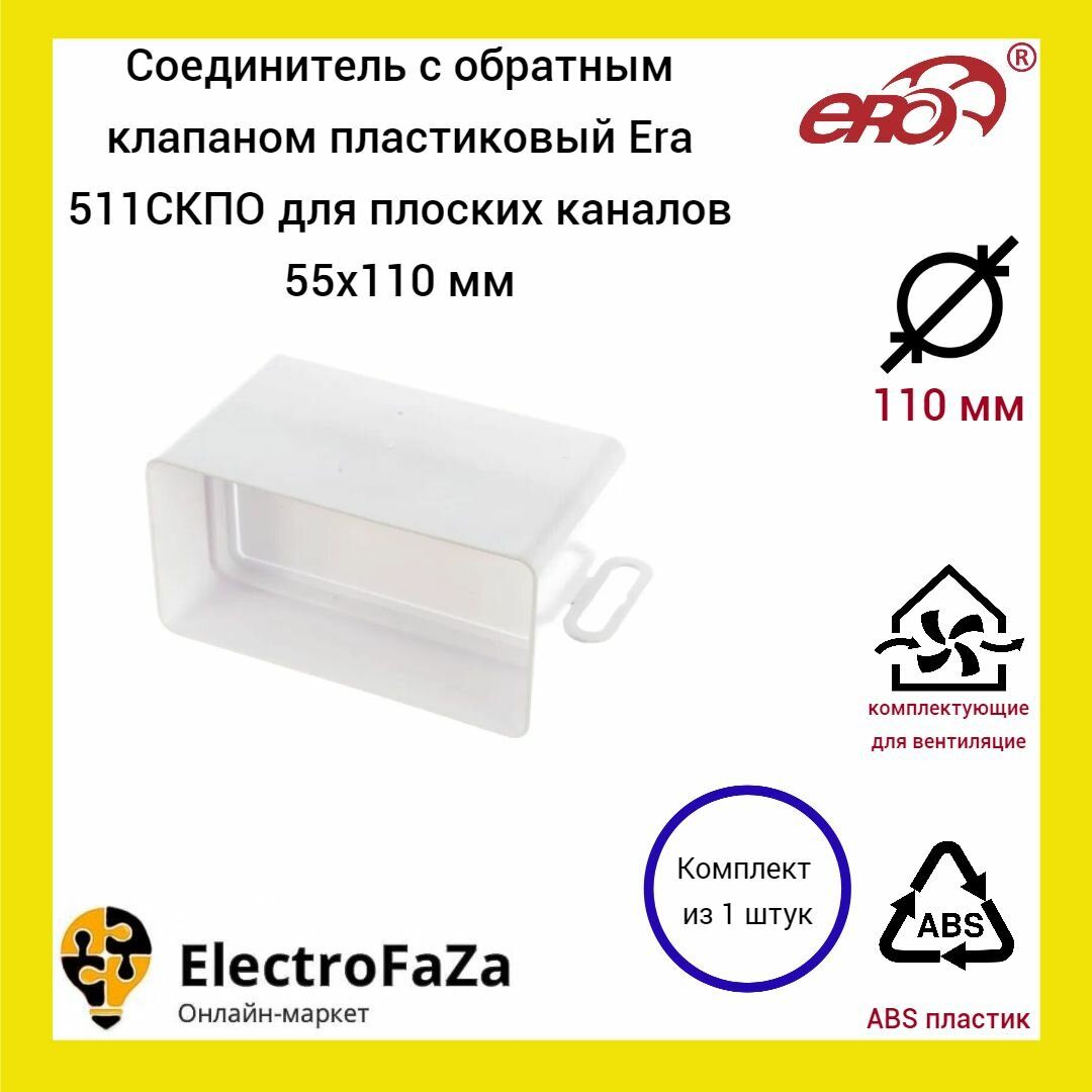 Соединитель плоских каналов 110х55 мм с обратным клапаном 511 скпо ERA (1 ед.)