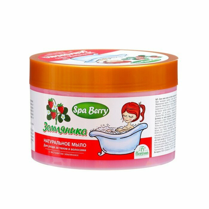 Натуральное мыло FLORESAN Земляничное, для ухода за телом и волосами, 450 мл