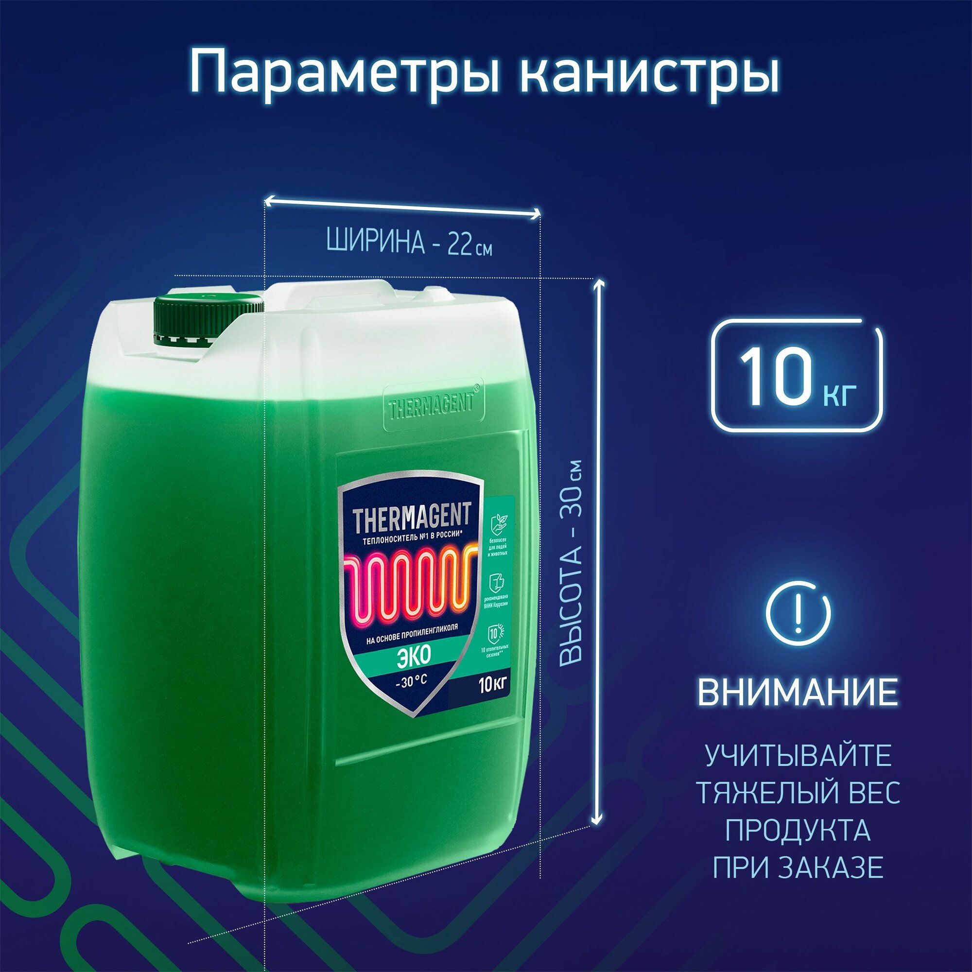 Термагент Эко теплоноситель пропиленгликоль -30С (10кг) / THERMAGENT Eko теплоноситель пропиленгликоль бытовой антифриз для систем отопления -30С (10к
