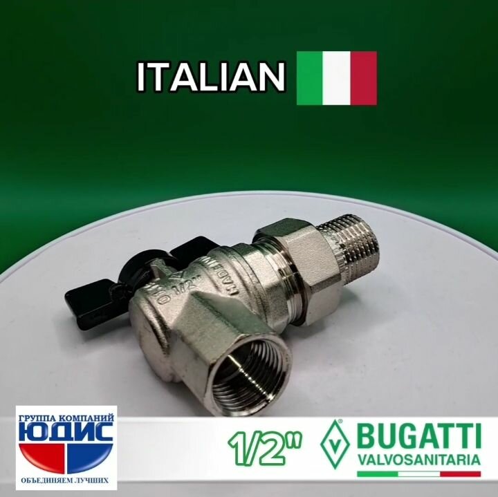 Кран шаровой BUGATTI с американкой угловой 1/2" ВР-НР