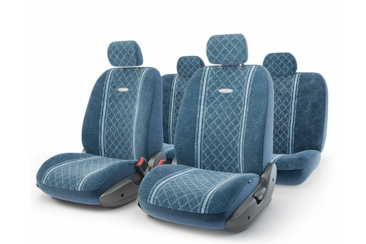 Чехлы AUTOPROFI GOBELEN для передних и задних сидений, жаккард, синий цвет, 11 предметов