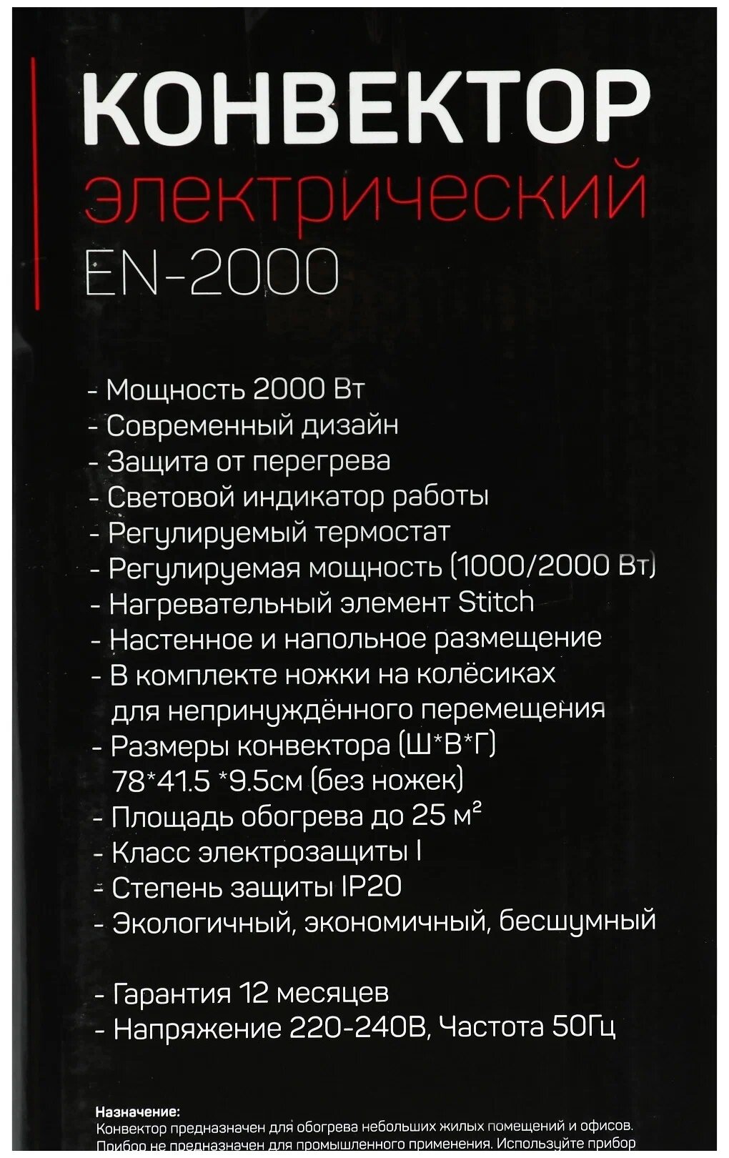 Купить Обогреватель EN-2000W Standard, конвекторный, 2000 Вт, до 25м2, X-образный нагреватель