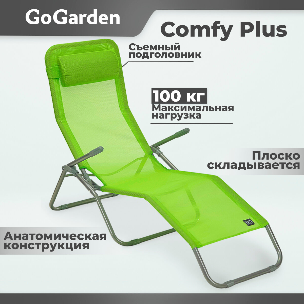 Шезлонг складной Gogarden COMFY PLUS, садовый,143х60х97 см, зелёный (салатовый)