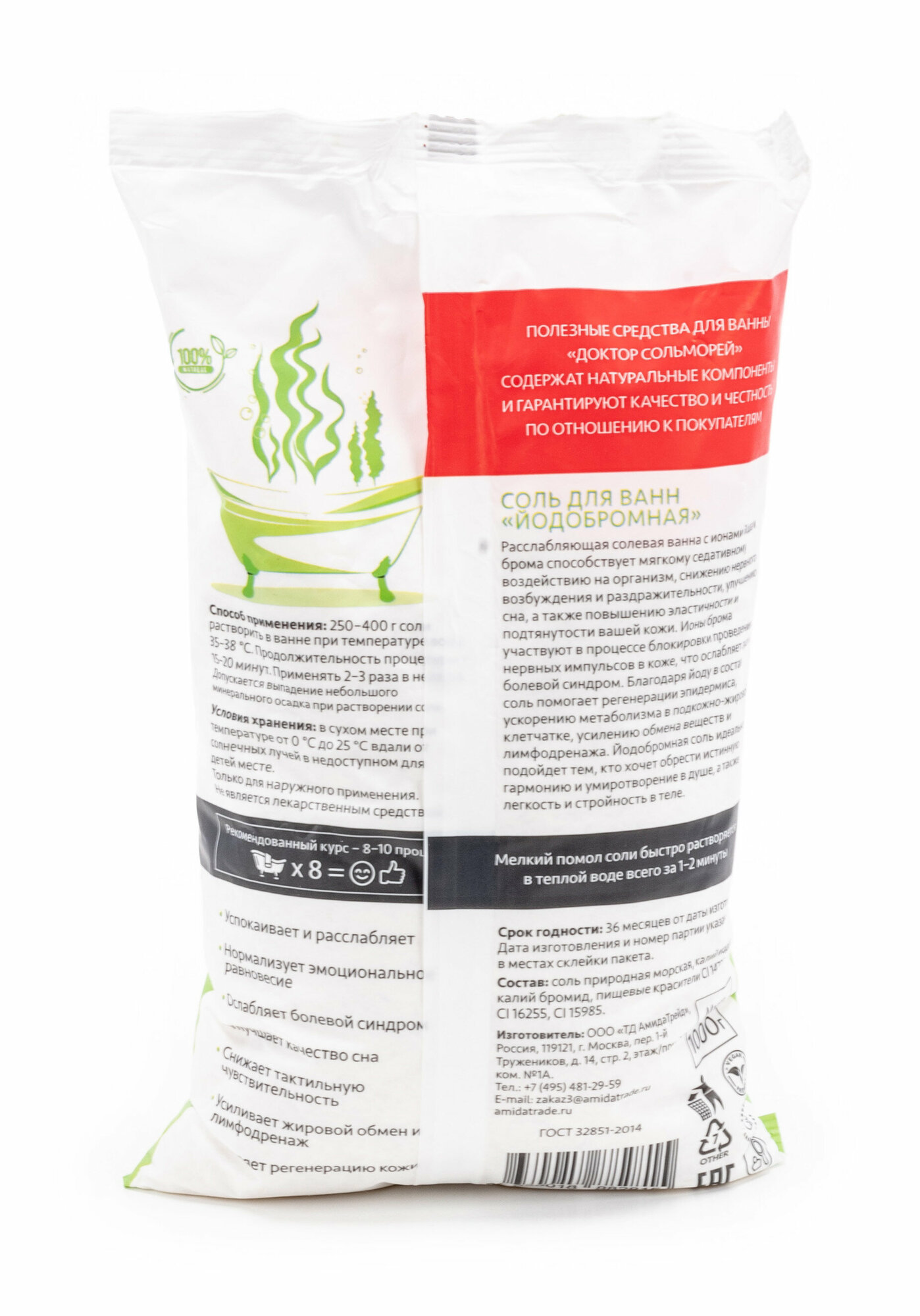 Соль для ванны Доктор Сольморей йодобромная, пакет 1кг / уход за телом