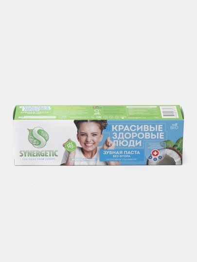 Зубная паста отбеливающая SYNERGETIC Интенсивное отбеливание "кокос + мята" натуральная, без фтора, 100г