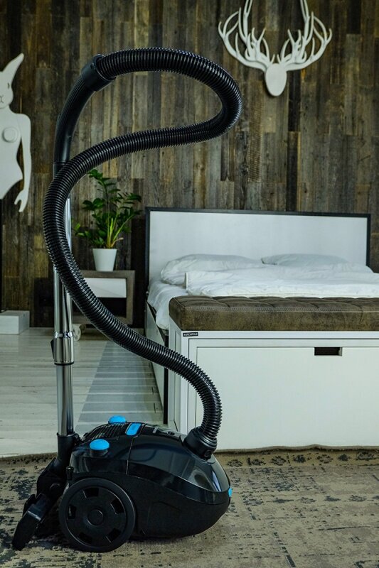 | Плюсы: | Гибкий шланг, длинный шнур питания; колеса не царапают поверхность; выходной фильтр можно промыть под водой. |