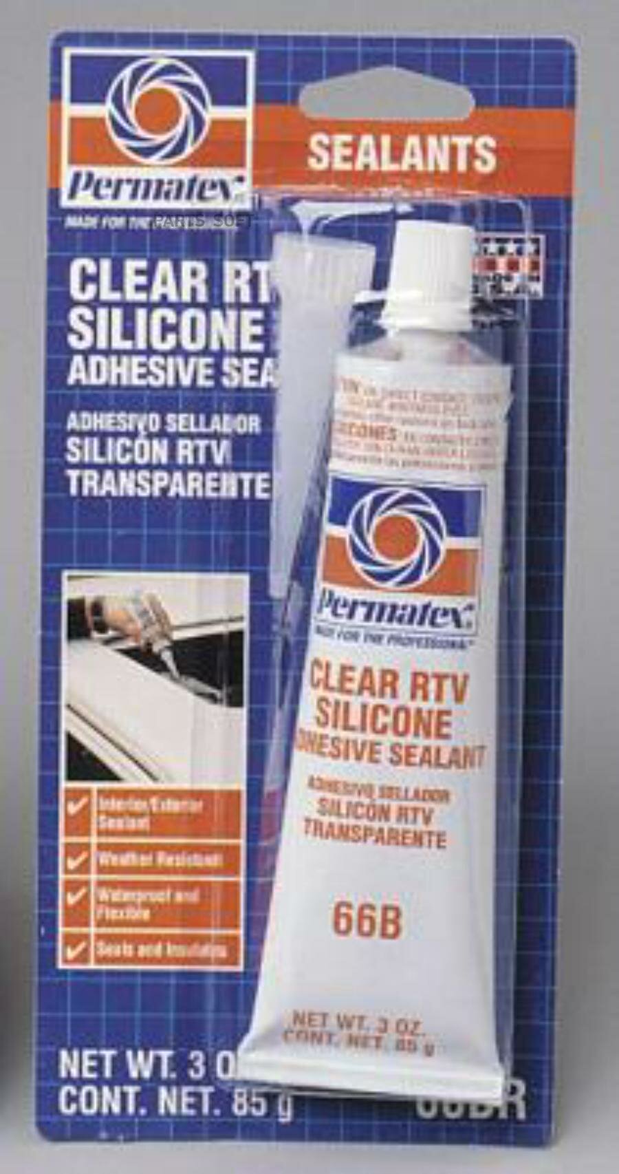 Герметик прозрачный силикон. для ремонта ветровых стекол, дверных коробок, электропроводки, крыши,винил.наконечников Clear RTV Silicone Sealant, 85 гр PERMATEX 80050 | цена за 1 шт