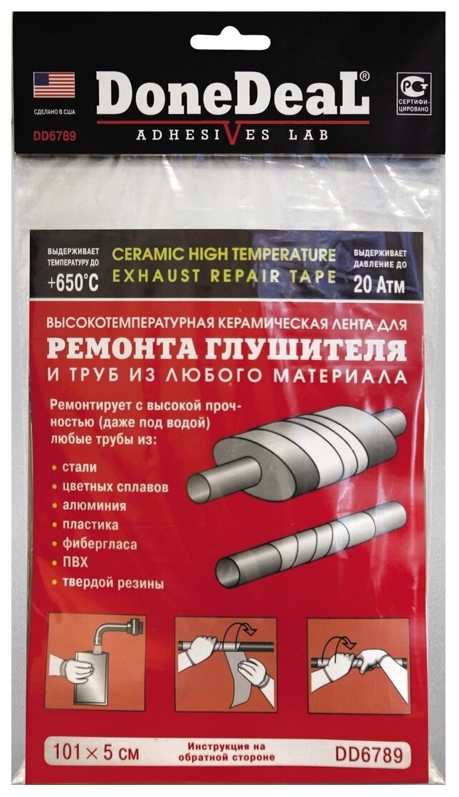СохранитьЛента для ремонта глушителя DD6789, DoneDeal, высокотемпературная керамическая, 101*5 см. интересное: