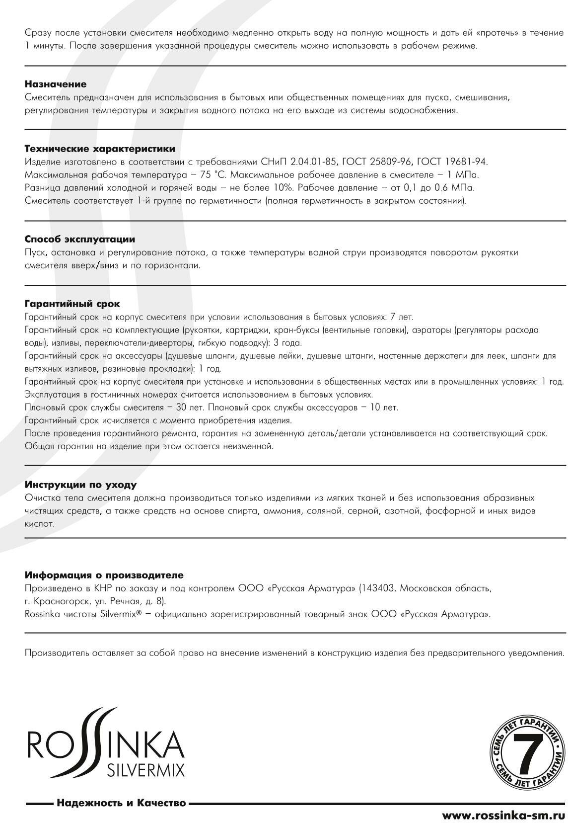| Производитель | Rossinka Silvermix |