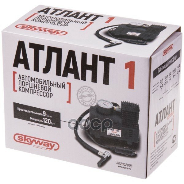Компрессор Пластиковый 20лмин В Прикуриватель Атлант01 3 Вида Насадок 20 Атм Skyway арт. S02002003