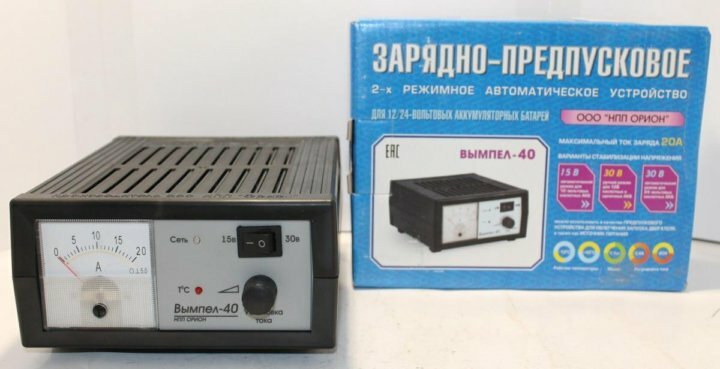 Зарядное устройство для аккумуляторов автомобиля вымпел-40 (0-20а, 12/24в, стрелочный амперметр)