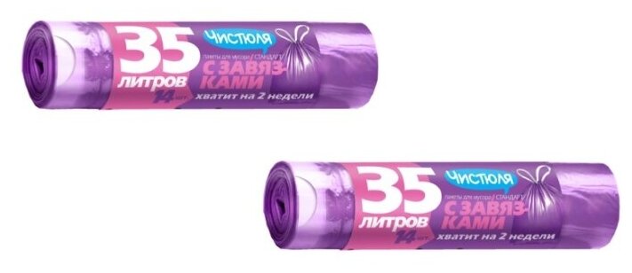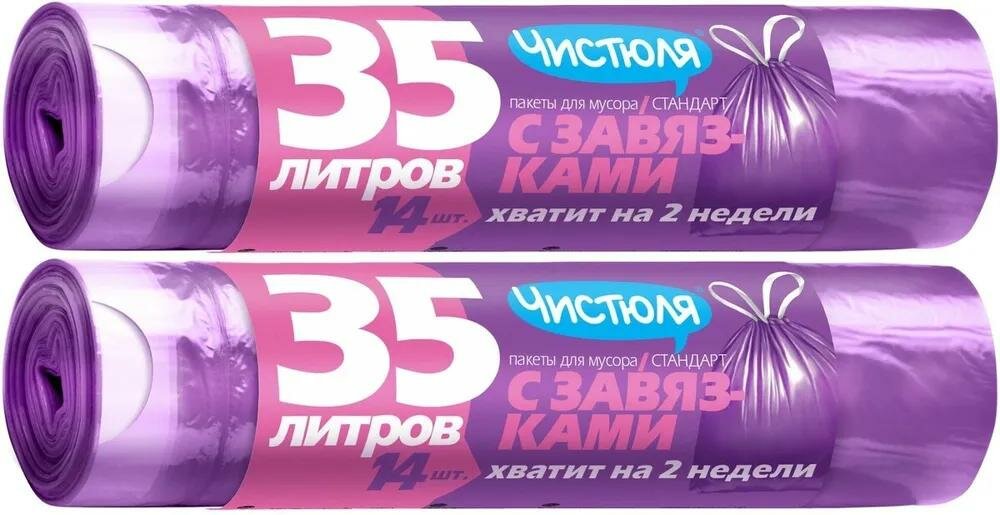 Мешки для мусора Чистюля стандарт с завязками (M3012) 35 л (14 шт.) фиолетовый