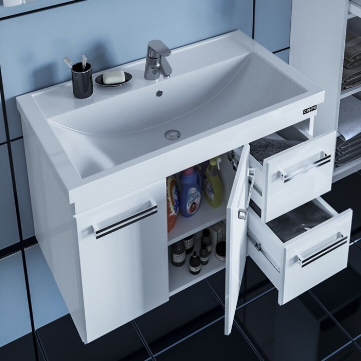 Тумба с раковиной СанТа Меркурий 80 подвесная Белая