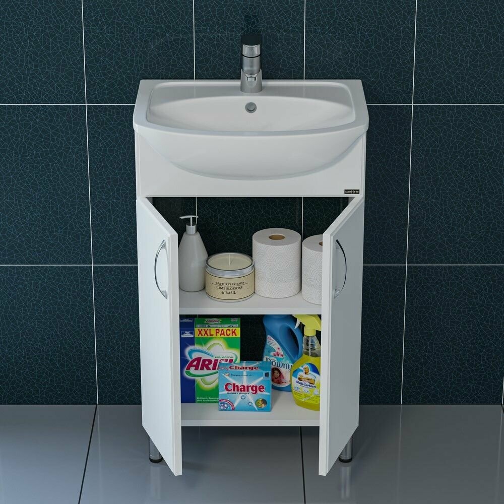 Тумба с раковиной для ванной Кристалл 50 белая.
