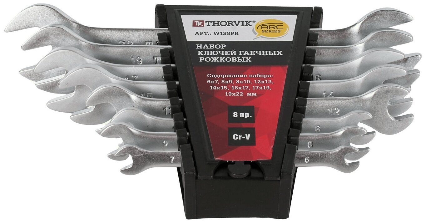 W1S8PR Набор ключей гаечных рожковых серии ARC на держателе, 6-22 мм, 8 предметов.Thorvik