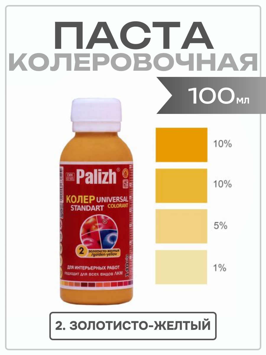 СохранитьКолеровочная паста Palizh Universal Standart ST-02 золотисто-желтый 0.1 л интересное: