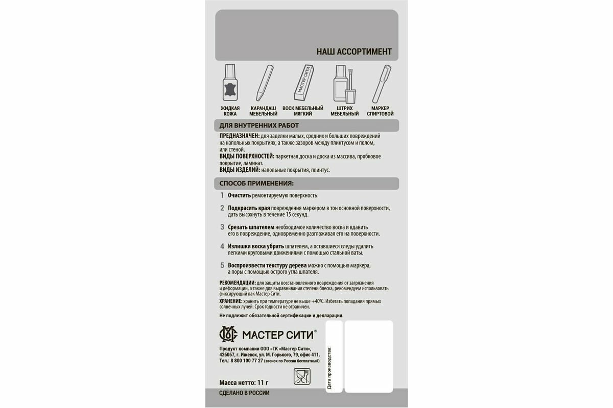 | Отзыв: | Замазал скол на ламинате! |