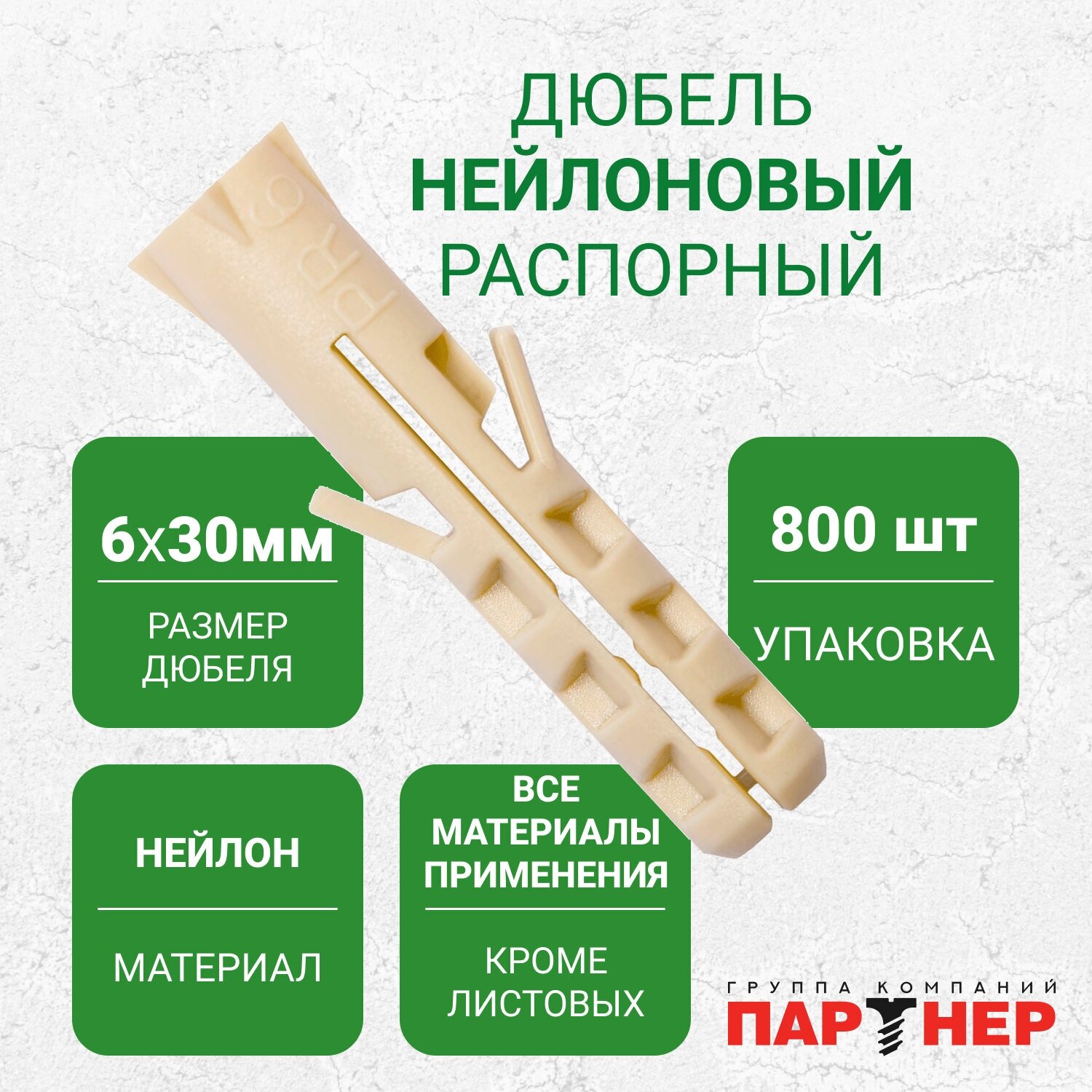 Нейлоновый дюбель Партнер PR 6x30 800 шт 826125 .