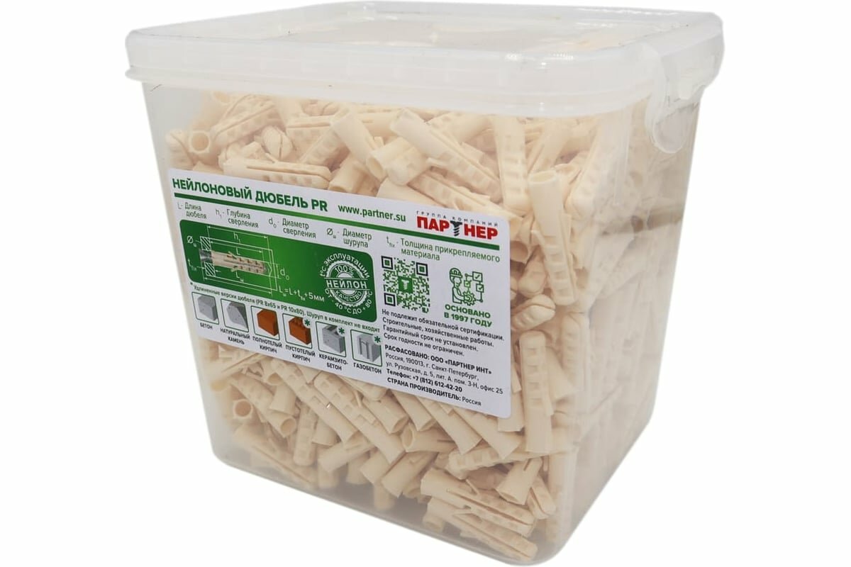 Дюбель нейлоновый партнер PR 6x30 ( 800 шт.)в контейнере, для полнотелых материалов основания