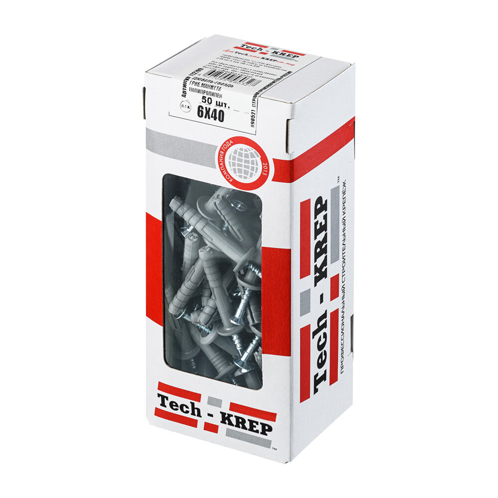 Дюбель-гвоздь 6х40 с грибовидной манжетой полипропилен (уп.50шт) коробка, TECH-KREP 112709 (1 упак)