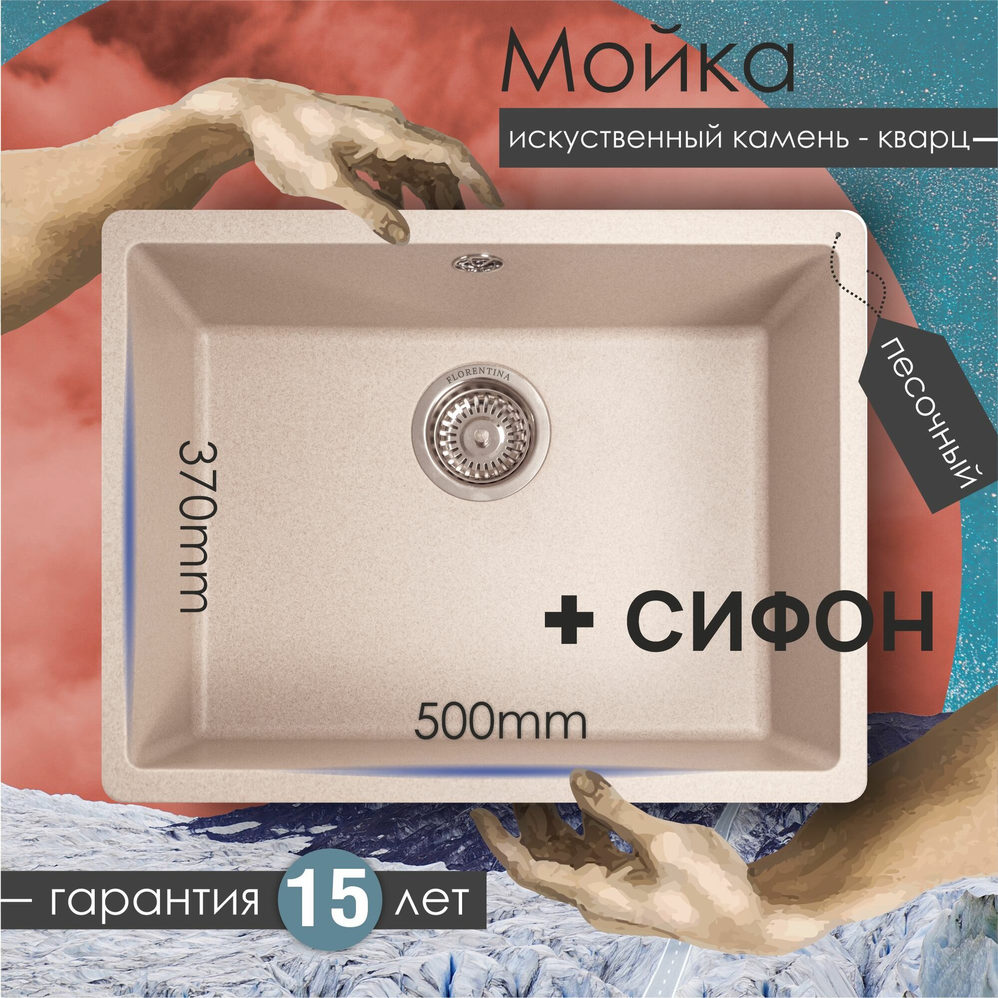 СохранитьМойка кухонная прямоугольная Флорентина Вега 500 Песочная (22.320.D0500.107) интересное: