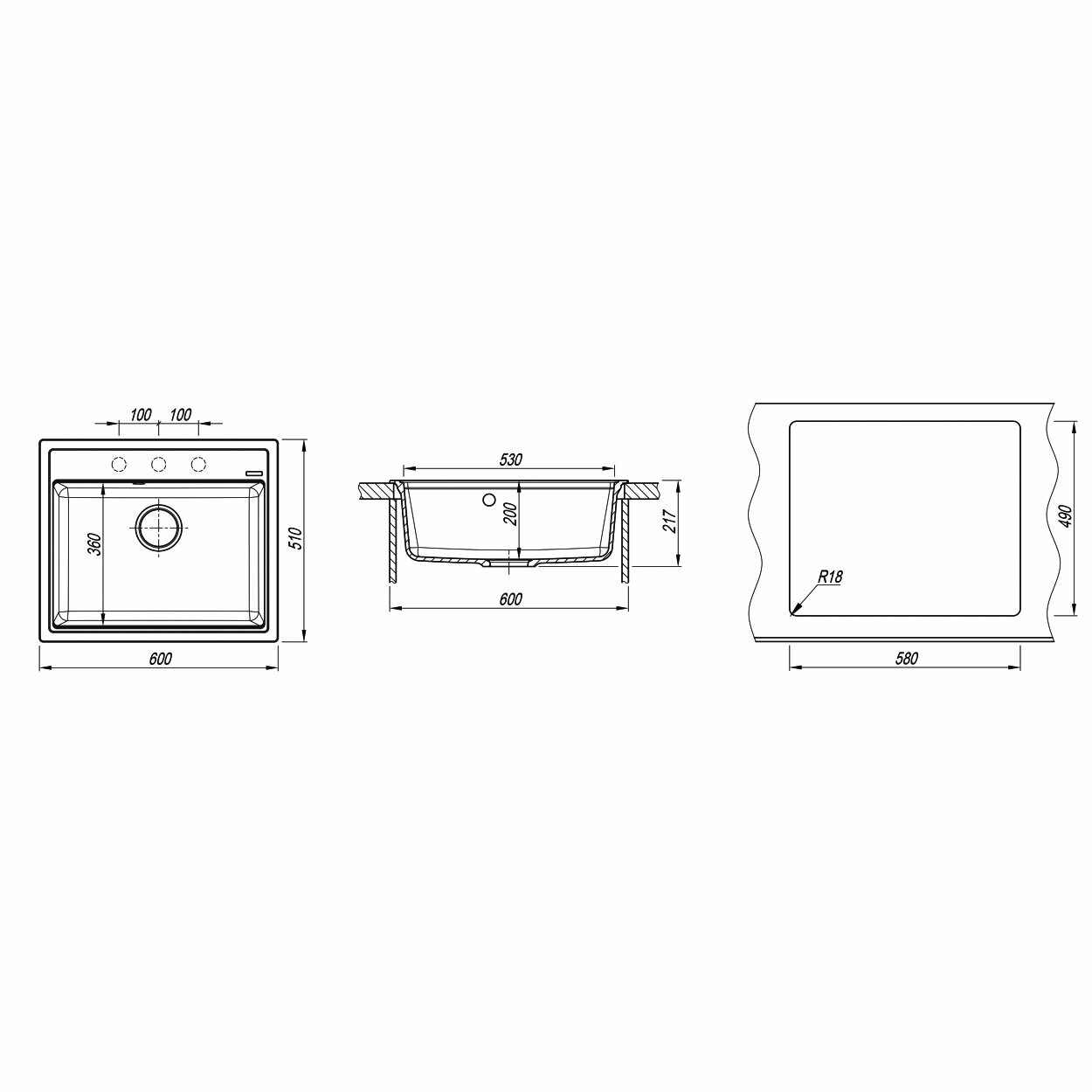 | Форма чаши | прямоугольная |
