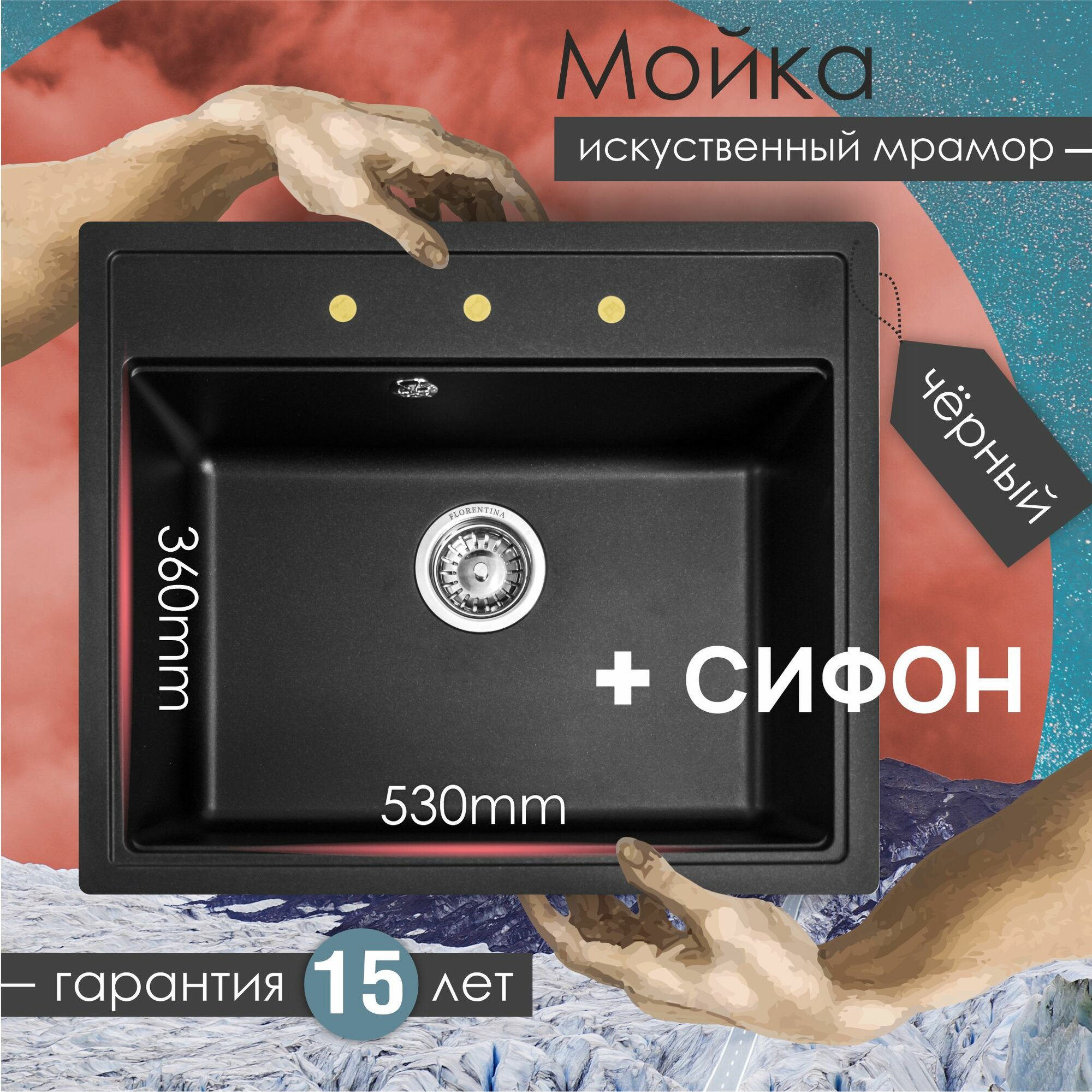 СохранитьМойка кухонная прямоугольная Флорентина Липси 600 Чёрная (20.120.D0600.102) интересное: