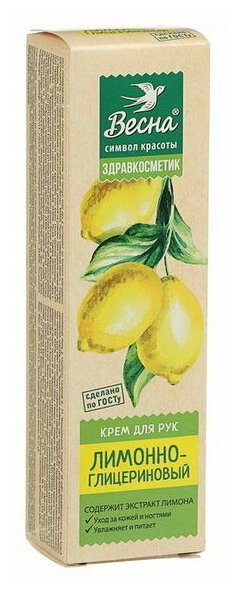 Крем для рук лимонно глицериновый весна Здравкосметик 40гр 2322 1571687