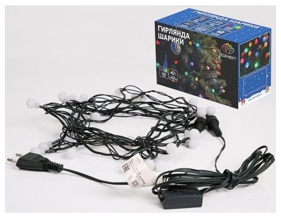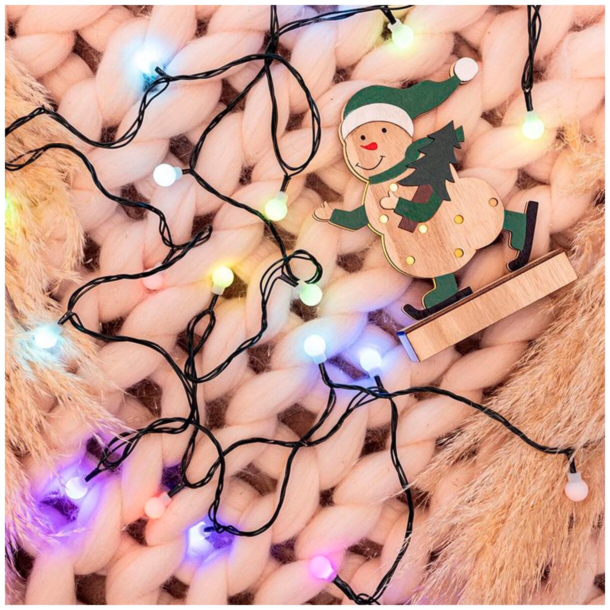 Светодиодная гирлянда Neon-night "Мультишарики" 5 м, диаметр 15 мм, 30 светодиодов, эффект смены цветов RGB, темно-зелёный провод