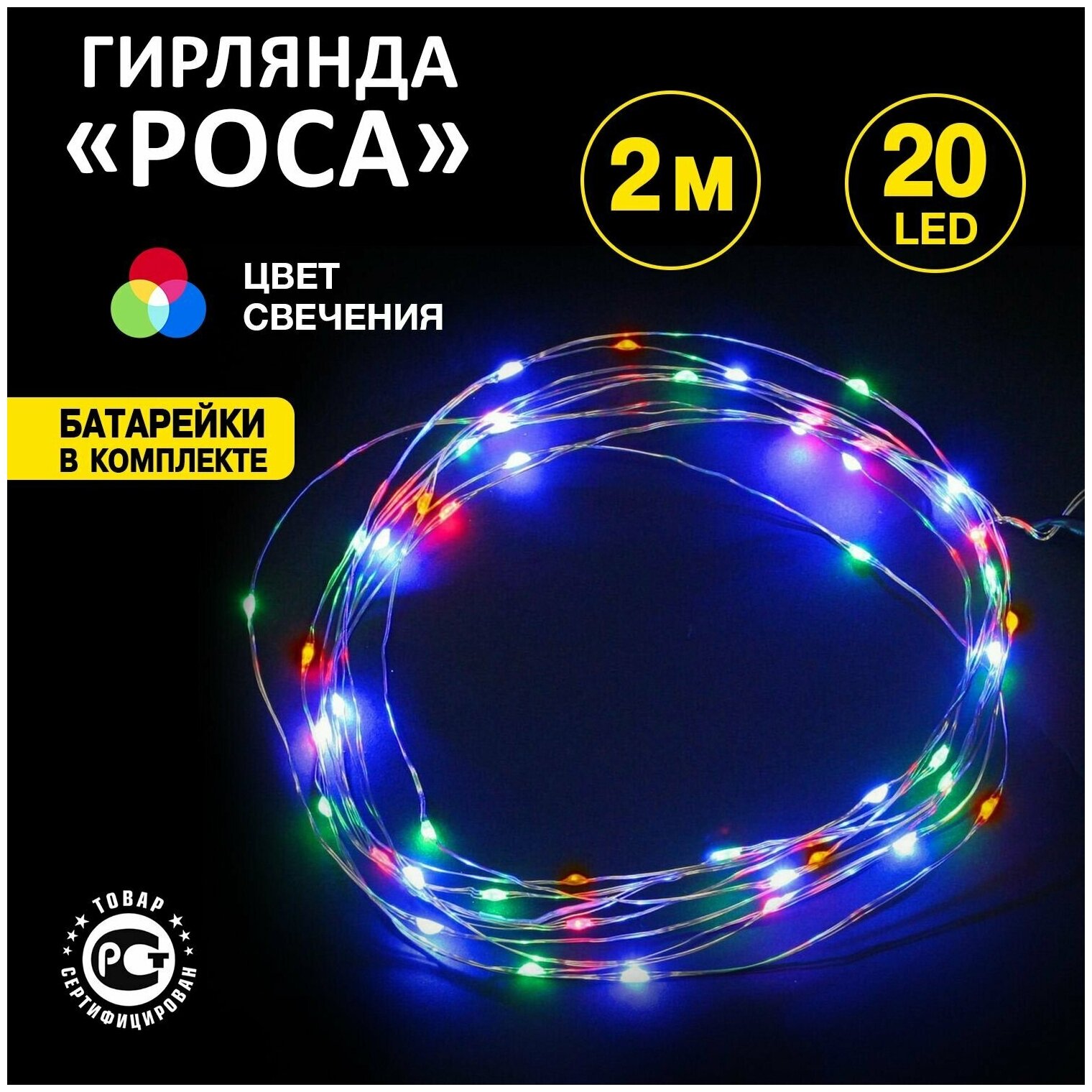Гирлянда светодиодная "Роса" 2 м, на батарейках, 20 LED, RGB (мультиколор) свечение с динамикой , Neon-Night 303-009