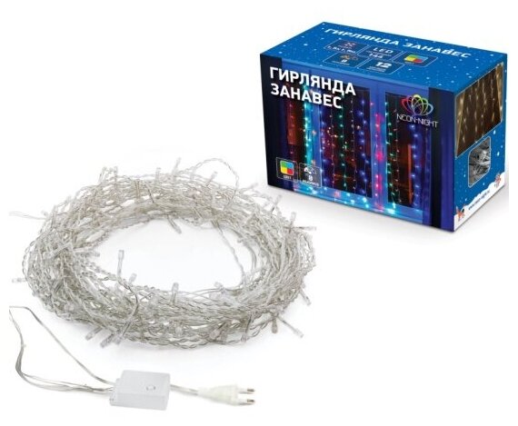 СохранитьNeon-Night Гирлянда Дождь занавес 1,5x1,5 м, прозрачный Пвх, 144 LED Мультиколор IP20 235-039 . интересное: