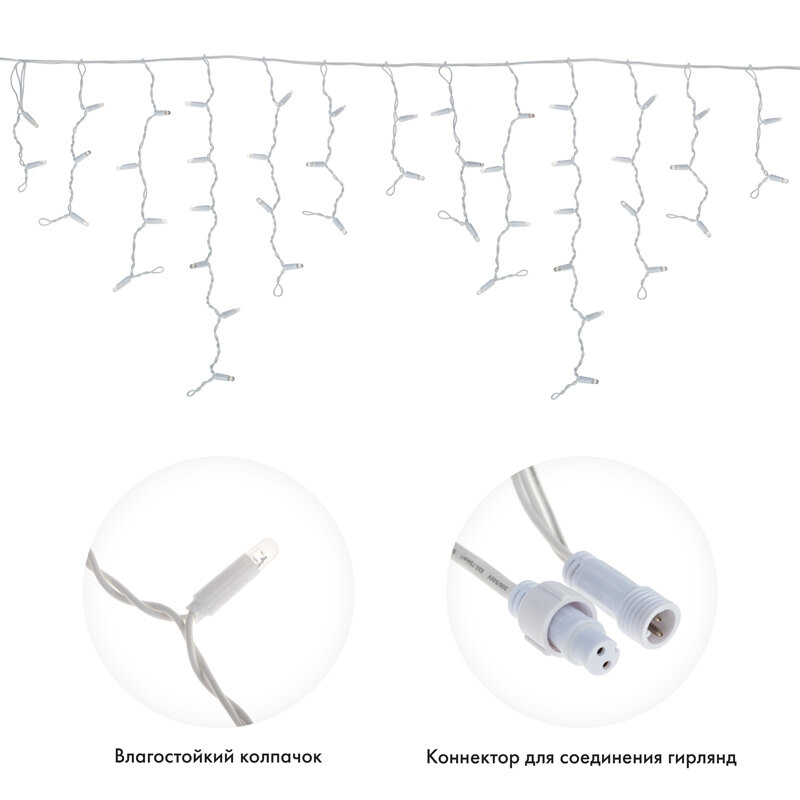 Гирлянда светодиодная Бахрома (Айсикл), 2,4х0,6м, 88 LED белый, белый ПВХ, IP65, постоянное свечение, 230В NEON-NIGHT (шнур питания в комплекте) 1 шт арт. 255-034