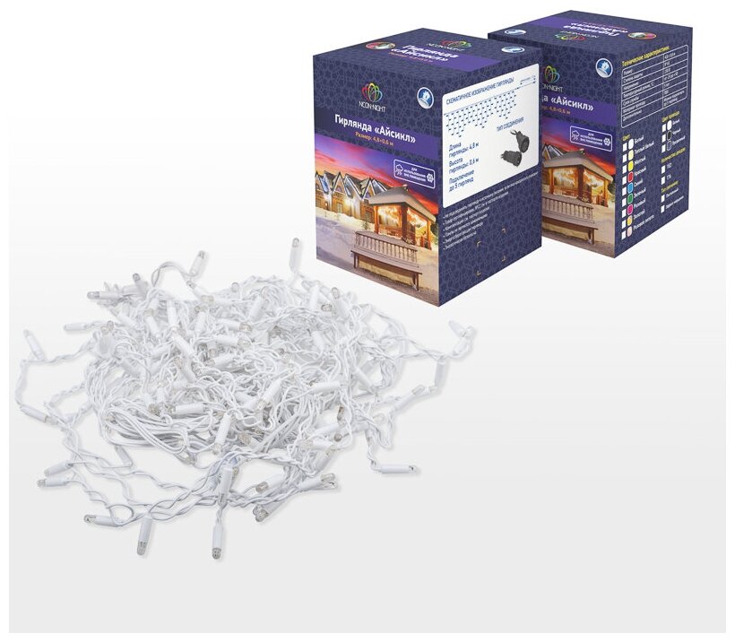Гирлянда Neon-Night Айсикл 4.8x0.6m 176 LED White 255-137