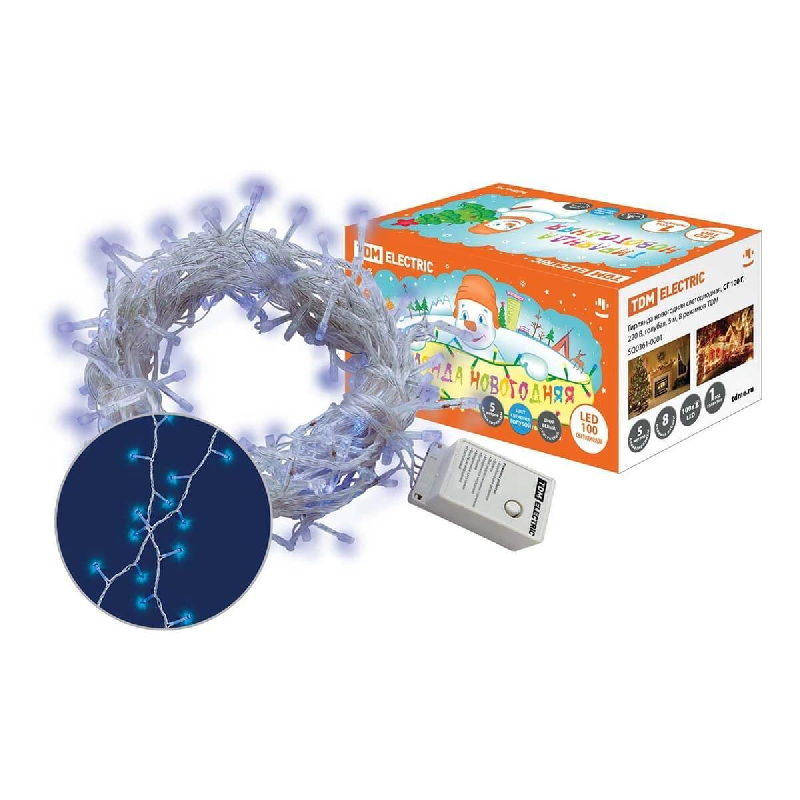Гирлянда новогодняя светодиодная TDM, СГ 100 Г, 220 В, голубая, 5 м, 8 режимов